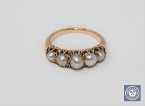 A Victorian five-pearl ring, size M