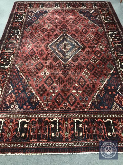 A Joshagan carpet, central Iran, the central stepped, indigo medallion within a diamond lattice of stylised plants on terracotta ground, 325cm by 227cm