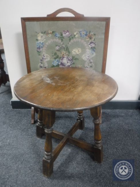 This is an early 20th century fire screen. It measures 81cm high by 55cm wide by 19cm deep.