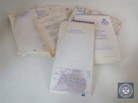 A box of Royal Air Force and US air force procedure booklets, aviation maps etc