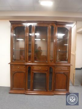 A reproduction mahogany triple door breakfront display cabinet