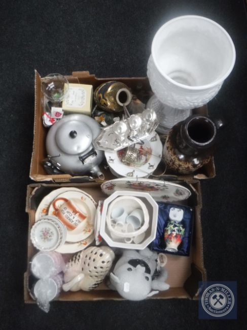 Three boxes of china, West German vase, jardiniere on stand, Japanese vase etc