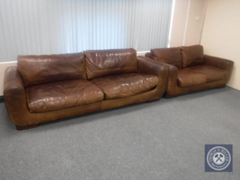 A contemporary leather three seater settee with matching two seater settee