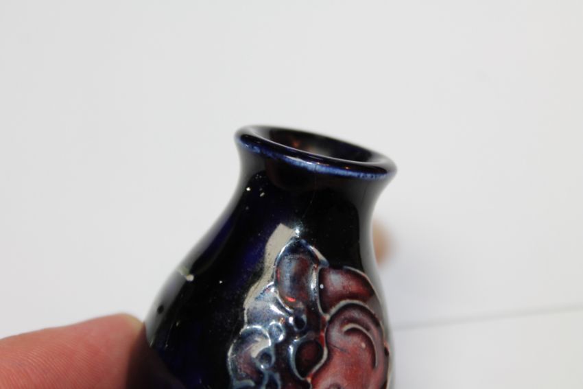 Small baluster vase with a faint hairline crack at the rim. Others crazed but good.