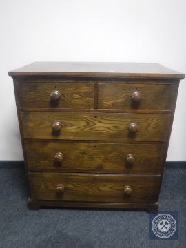 An Edwardian oak five drawer chest with knob handles