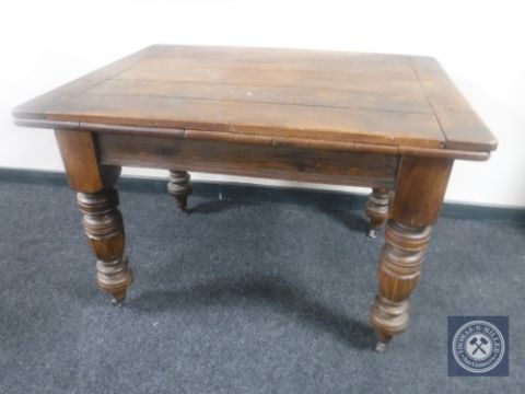 An antique pine drawer leaf table