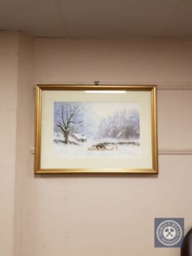 Joe Hush : A winter landscape, 53 cm x 34 cm , signed, framed.