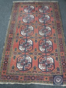An Afghan Bokhara rug on salmon ground, 192cm by 118cm