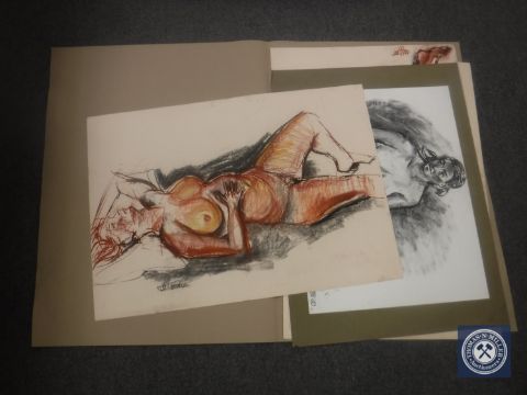 Donald James White : Reclining Nude Study, colour chalks, signed with initials, dated '00, 59 cm x 84 cm, together with four similar, all parts unframed. (5)