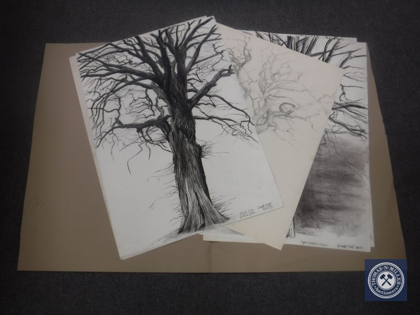 Donald James White : Wych Elm, Botanic Gardens, black wash, signed, dated Nov '83, 84 cm x 60 cm, together with four similar, all parts unframed. (5)