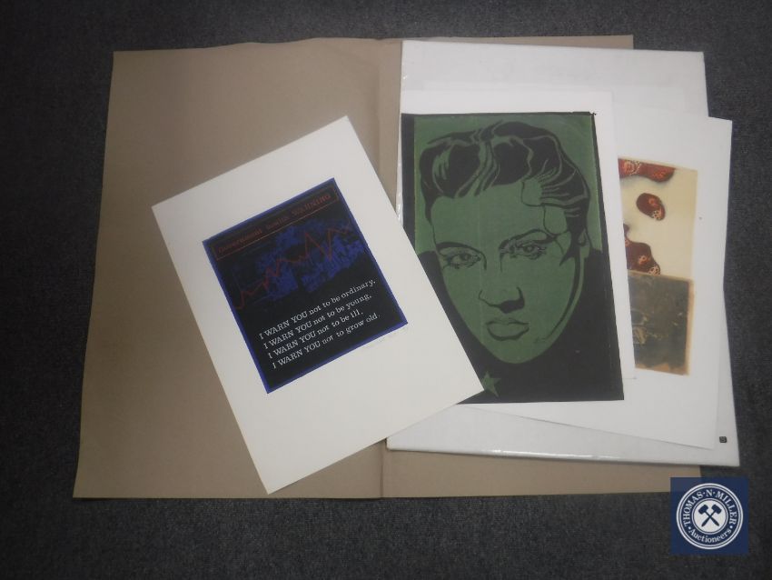 Donald James White : I Warn You Not To Be Ordinary, monoprint, signed, dated 9/6/87, 59 cm x 42 cm, together with four similar, all parts unframed. (5)