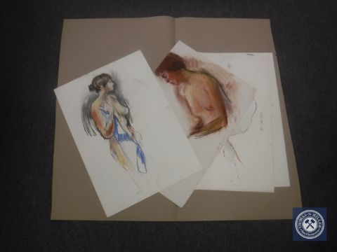 Donald James White : Nude with Blue Towel, colour chalks, signed with initials, dated '82, 60 cm x 42 cm, together with four similar, all parts unframed. (5)