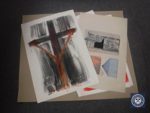 Donald James White : Der Blutge Ernst, monoprint, signed with initials, dated 9/10/85, 83 cm x 59 cm, together with four similar, all parts unframed. (5)