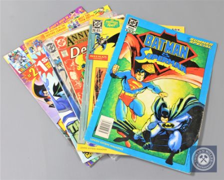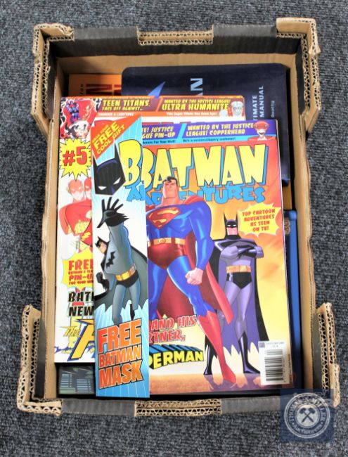 A tray of Batman DC Comics of various ages and a quantity of Batman promotional material and graphic novels.