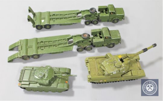 Two Dinky Might Antar Tank Transporters 660 with Chieftain 683 and Centurion 651 tanks.
