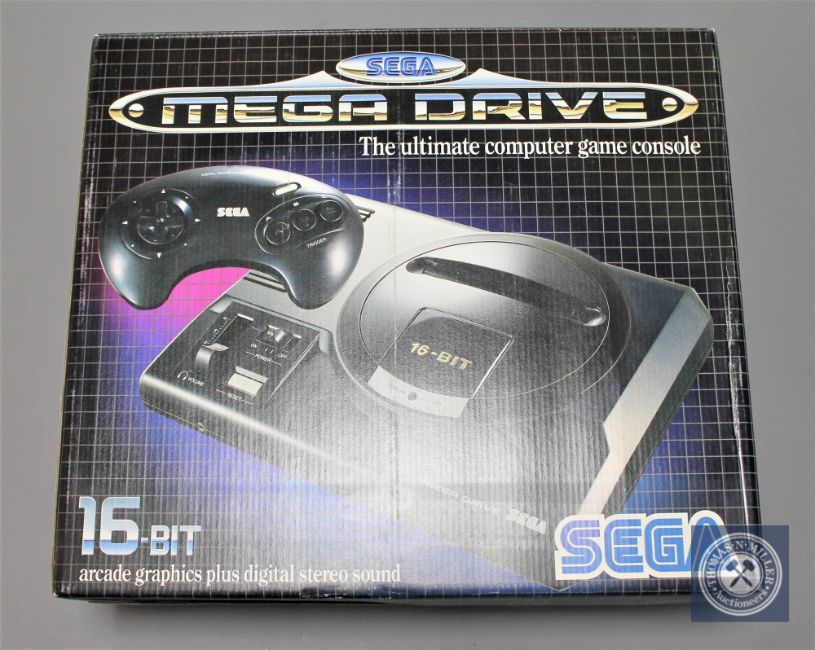 A Sega Mega Drive 16-Bit computer game console, boxed in retail condition.