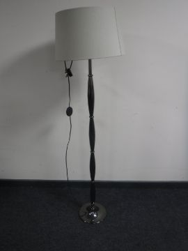 A contemporary bedroom chair and a metal standard lamp