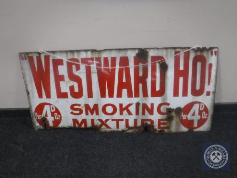 An early 20th century enamelled advertising sign "Westerward Ho! Smoking Mixture"