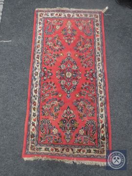 A fringed Iranian Saroukh rug on salmon ground