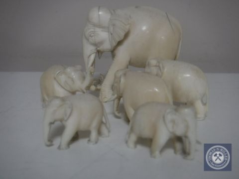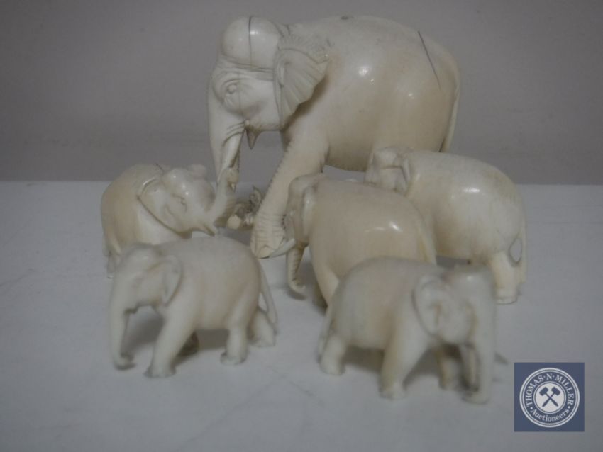 A set of six miniature antique carved ivory elephants