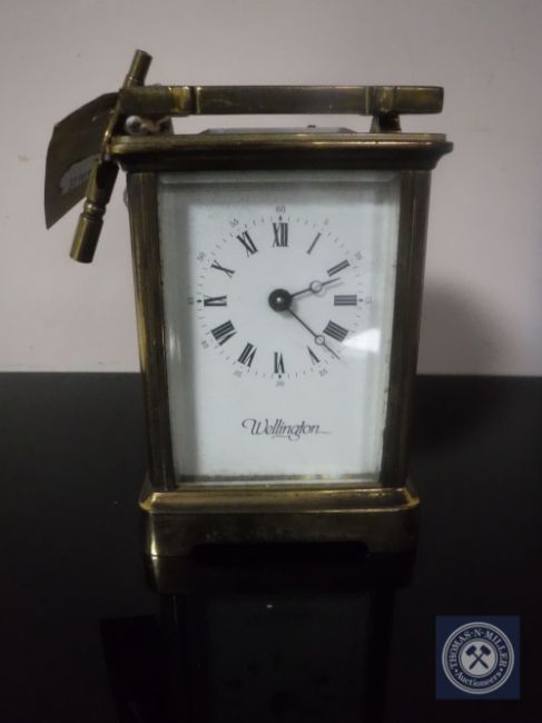 A brass cased Wellington carriage clock with key
