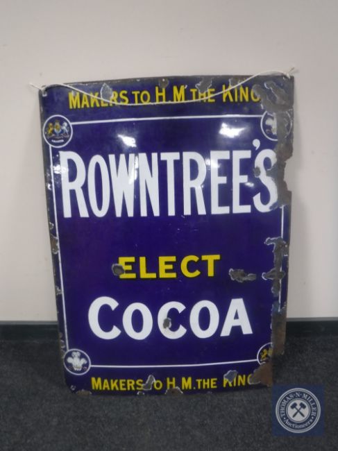An early 20th century enamelled advertising sign "Rowntree's Elect Cocoa"