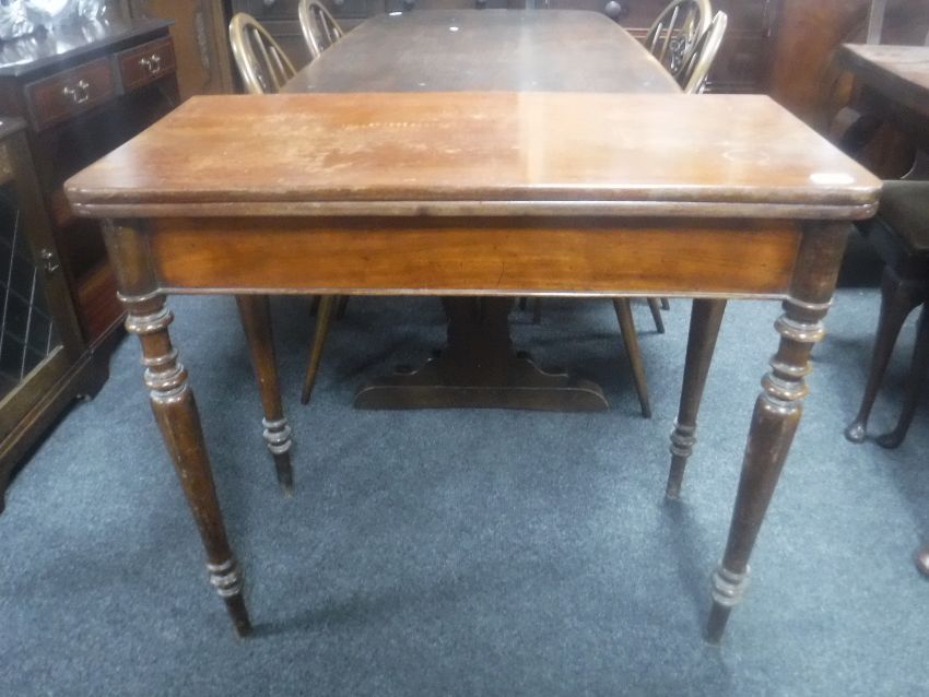 A 19th century mahogany foldover tea table