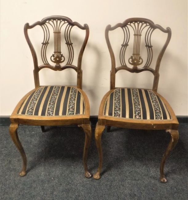 Two pairs of early 20th century mahogany bedroom chairs on cabriole legs