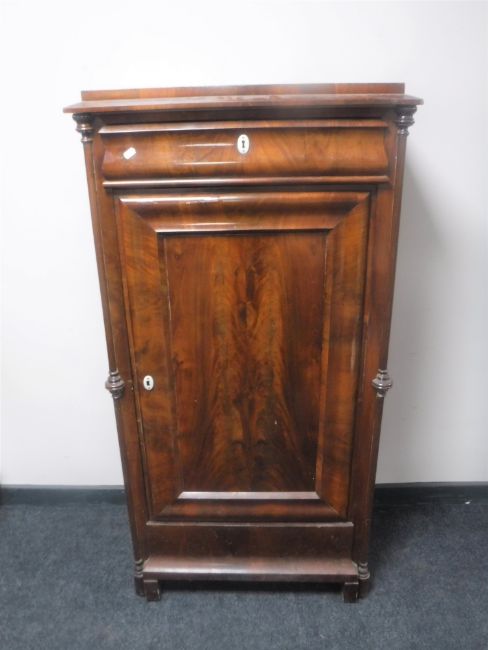 A 19th century continental mahogany sentry door cabinet fitted a drawer
