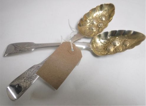 A pair of George III silver berry spoons, John Meek, London 1804