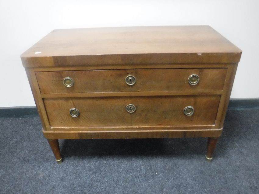 A 19th century continental mahogany two drawer chest with brass drop handles