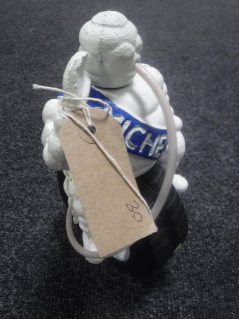 A cast metal figure of Michelin Man on tyre