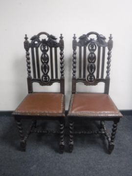 A pair of antique carved oak dining chairs