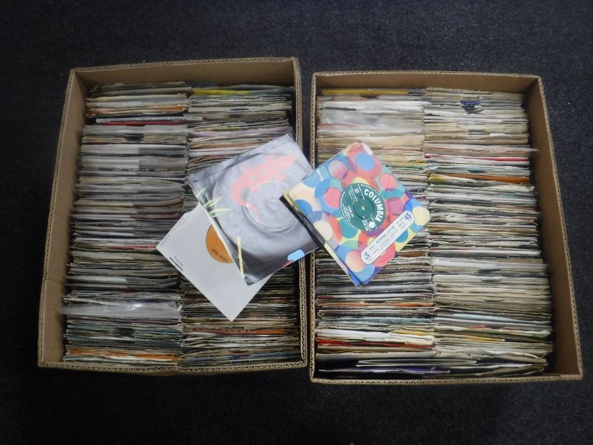 Two boxes of vinyl 45 singles - Green Day, Sex Pistols, Guns and Roses etc