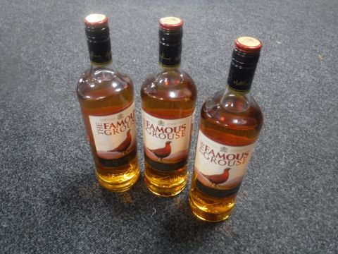 Three 1 litre bottles of Famous Grouse Blended Scotch Whisky