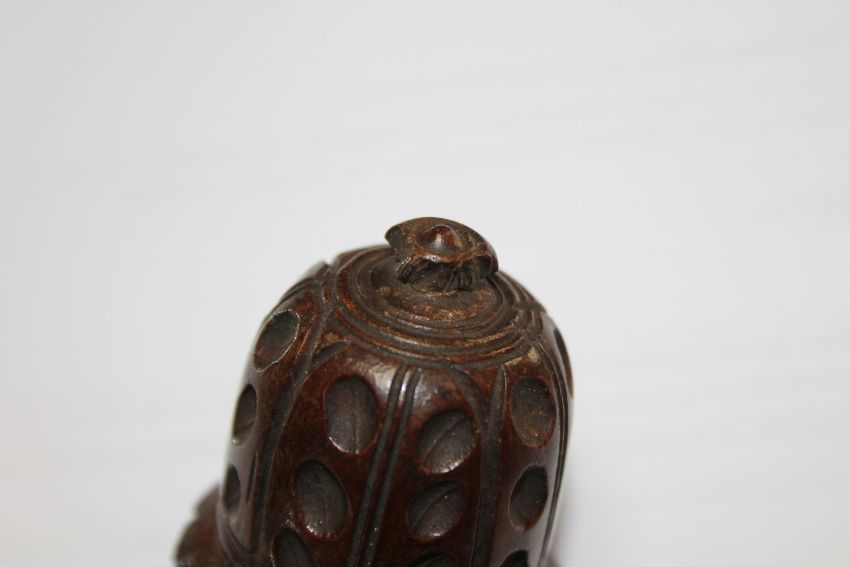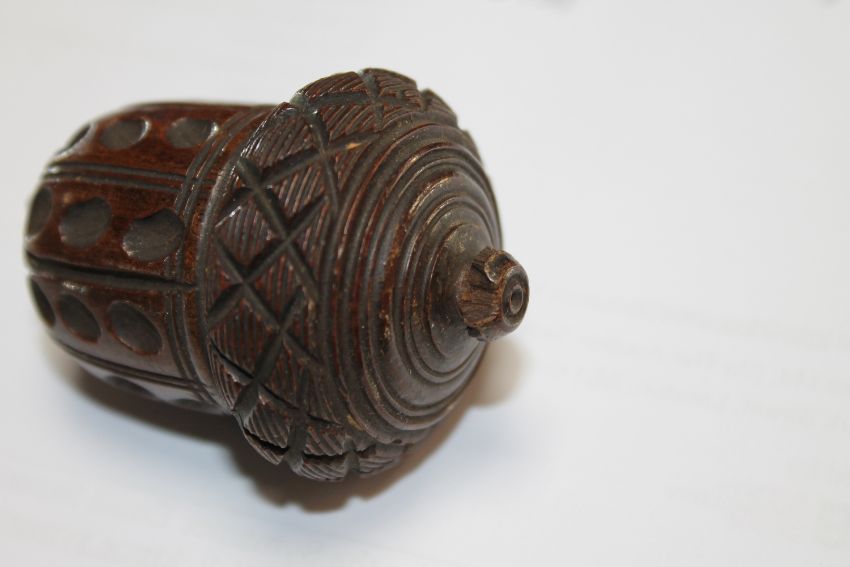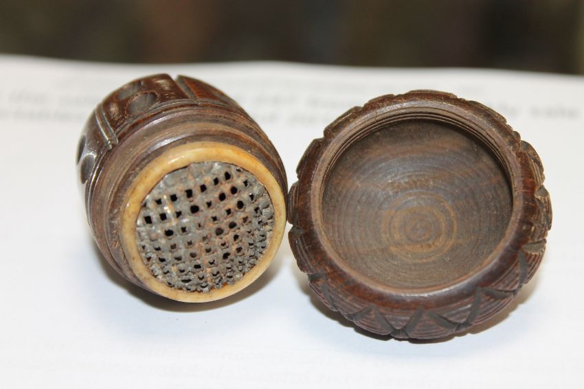 Bone ring intact. Screw thread working. Chips to both finials. See additional images.