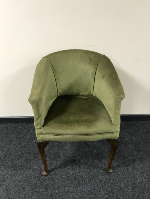 An Edwardian armchair upholstered in green dralon