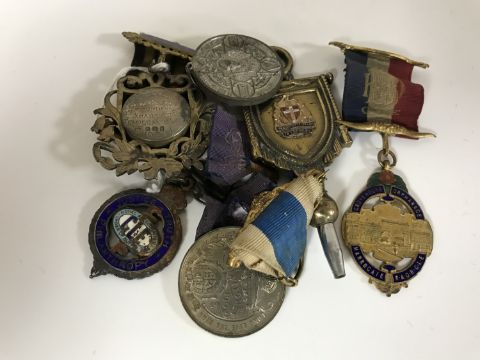 Commemorative medals, silver Temperance Lodge medal on ribbon dated 1927, etc