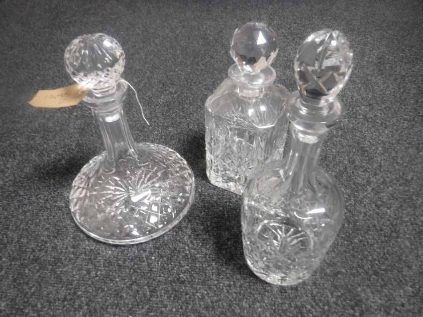 Three lead crystal decanters