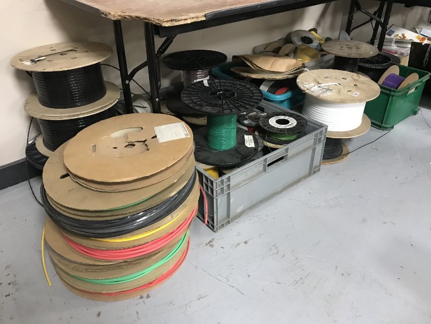 A large quantity of wire on spools