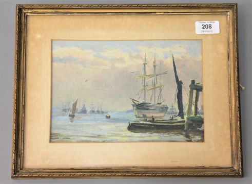 John Chambers : Shipping at the mouth of The Tyne, oil on board, 16 cm x 23 cm, framed.