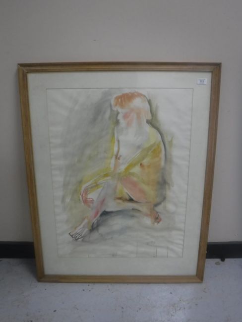 Donald James White : Nude study of Caroline seated, watercolour, signed with initials, dated '87, 74 cm x 56 cm, framed.