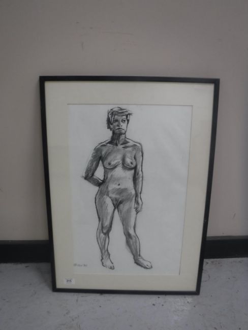 Donald James White : Carol, charcoal, 35 cm x 54 cm, framed.