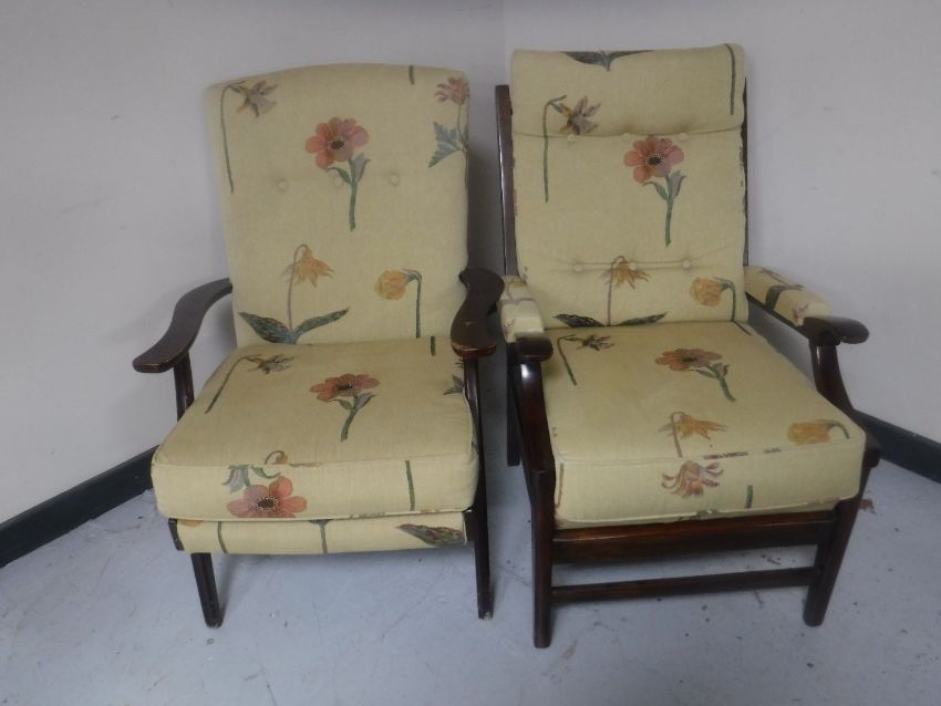 Two mid 20th century Parker Knoll armchairs in floral fabric
