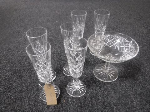 Six Edinburgh Crystal champagne flutes and a comport (7)
