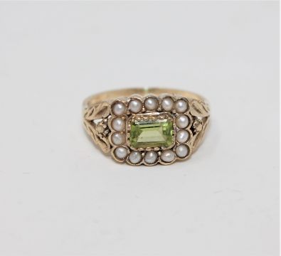 A 9ct gold peridot and pearl ring, size N