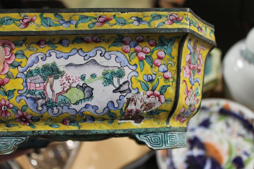 Planters with numerous losses. Pewter plate modern and in good condition, no marks.