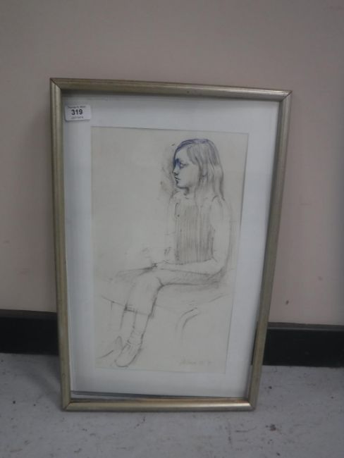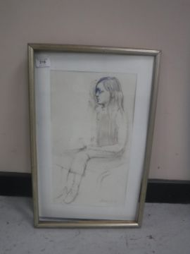 Donald James White : Valerie, pencil and ink, 23 cm x 41 cm, framed.
