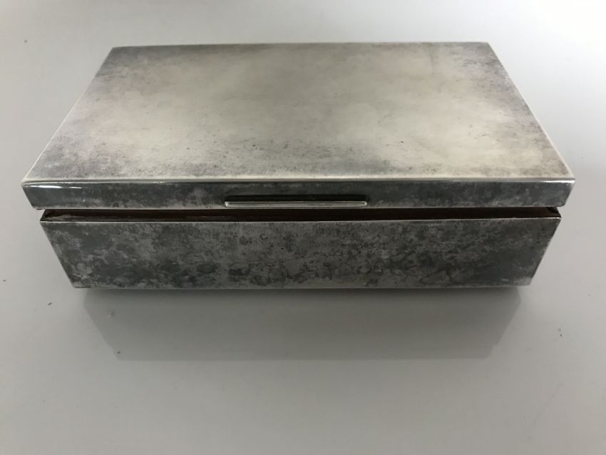 A silver cigarette box