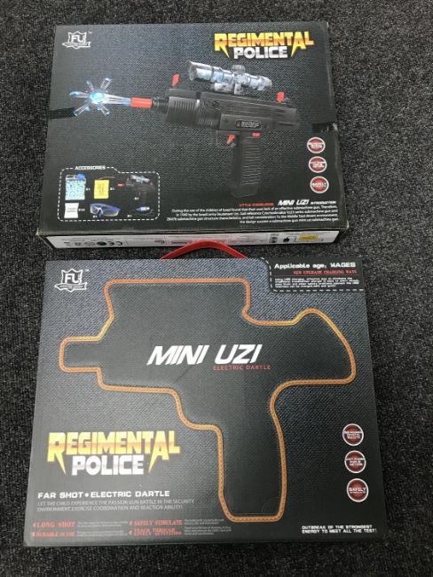 Two boxed Regimental Police mini uzi water guns